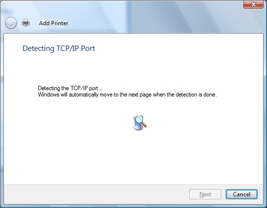 Step4: Wait while Vista tries to detect the TCP/IP, it will fail but that's not a problem, the settings are configured in the next step: