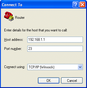 In Windows 95/98/ME the default Telnet program can be used instead. Press the Start button, then Run, then enter TELNET.EXE 192.168.1.1 (assuming that's the router's IP address) and the telnet program will open.