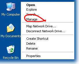 Your USB modem/phone must be correctly installed any plugged into your PC. From your windows desktop, Right Click on 'My Computer' and select 'Manage':