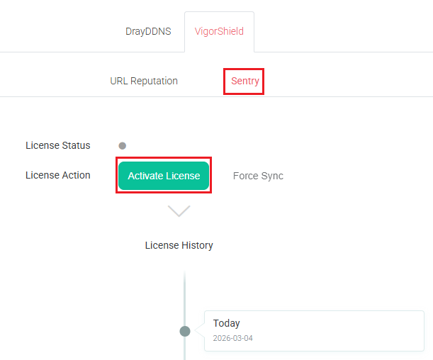- In the VigorShield tab, choose Sentry or Guardian and click Activate License.