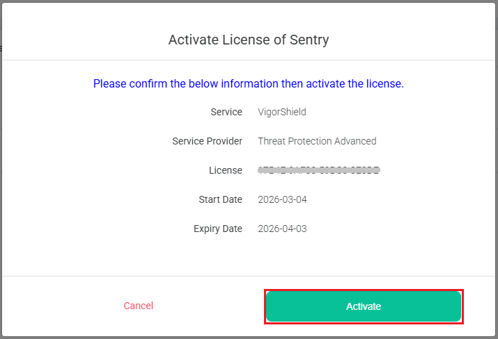 After activating the license, please contact support@draytek.co.uk to obtain the user account credentials for portal access.