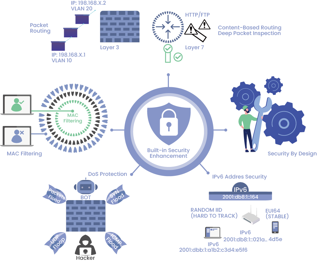 - Layer 3/7 Packet Filtering: Fine-tune traffic control down to application-level detail.