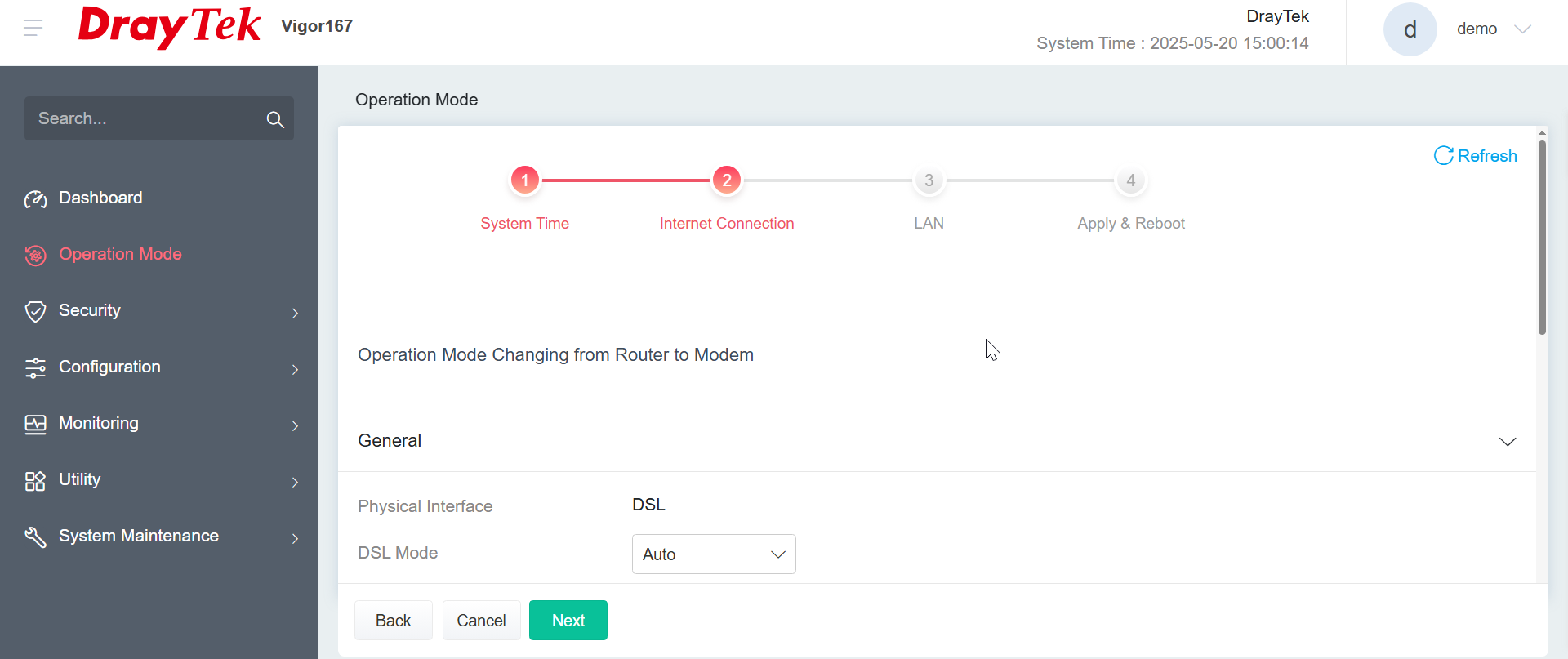 - Modem (Bridge) Mode: Transparent DSL pass-through.